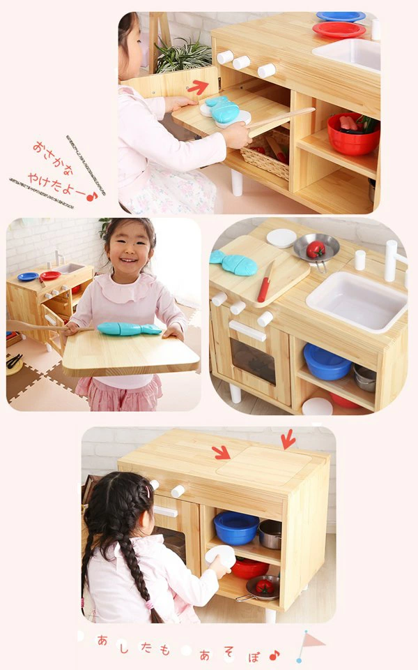 ままごとからお絵かきや作業まで、長く使える木製キッチンを探している方にぴったりですよ。