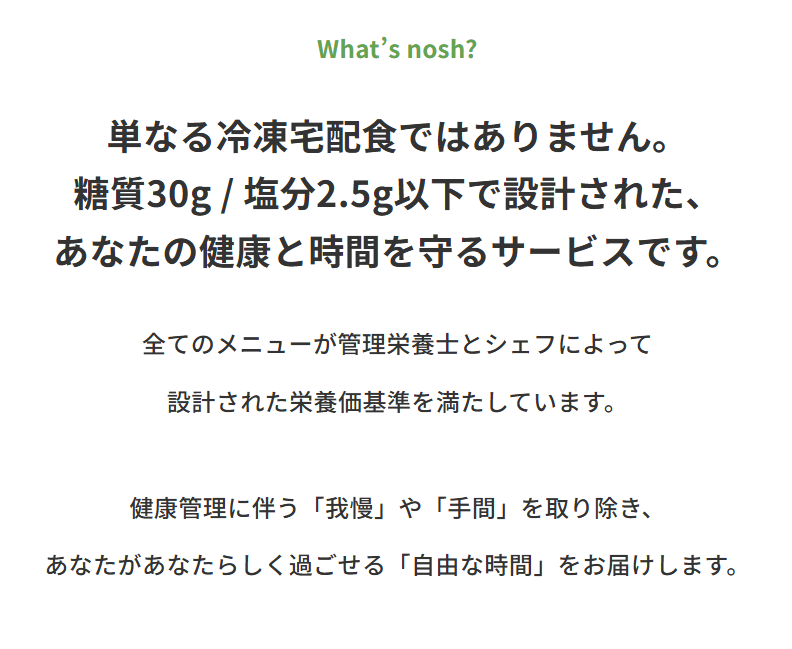 ナッシュは、冷凍状態で届いた食事を電子レンジで温めるだけで完成する宅配弁当サービスです。