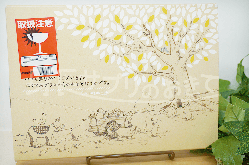 配送業者は佐川急便で送られてきました。注文してから到着までおよそ4日ほどで到着しました。パッケージは動物の絵が描かれた可愛らしい雰囲気になっています。