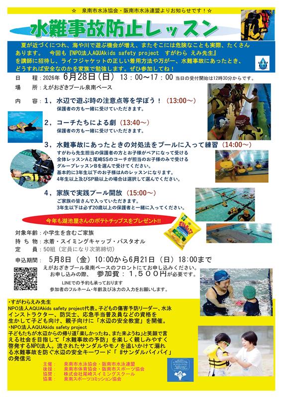 今年も水難事故防止レッスンの開催が決定いたしました!!