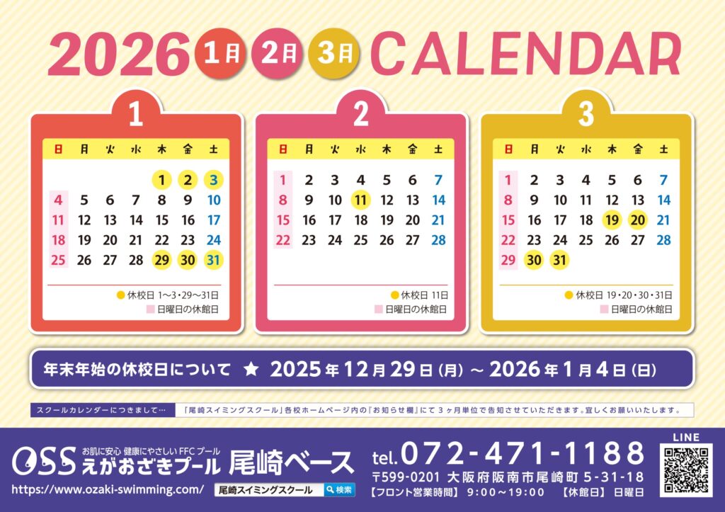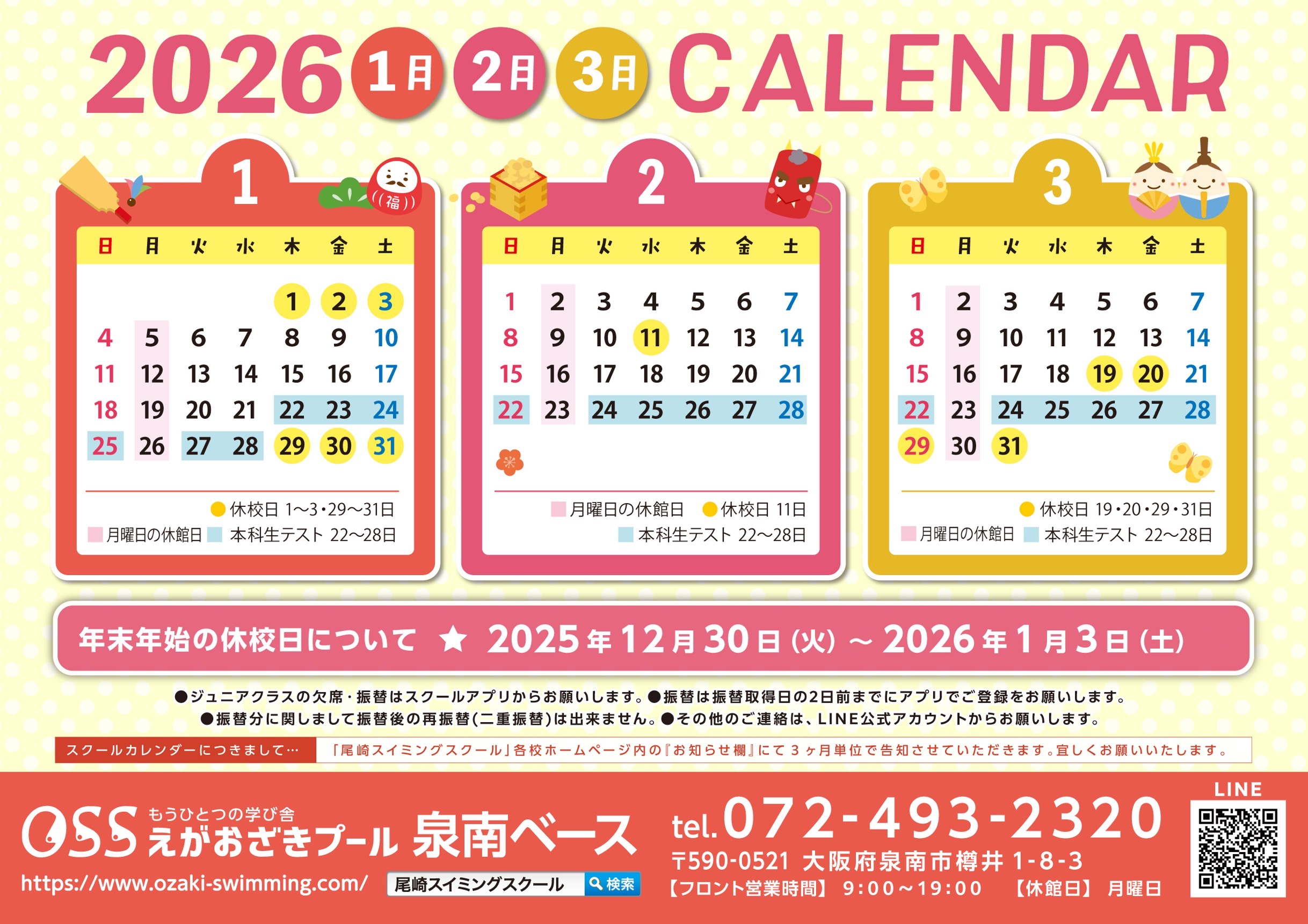 年始の営業は、泉南校が1月4日日曜日から、尾崎校が1月5日月曜日からとなります。