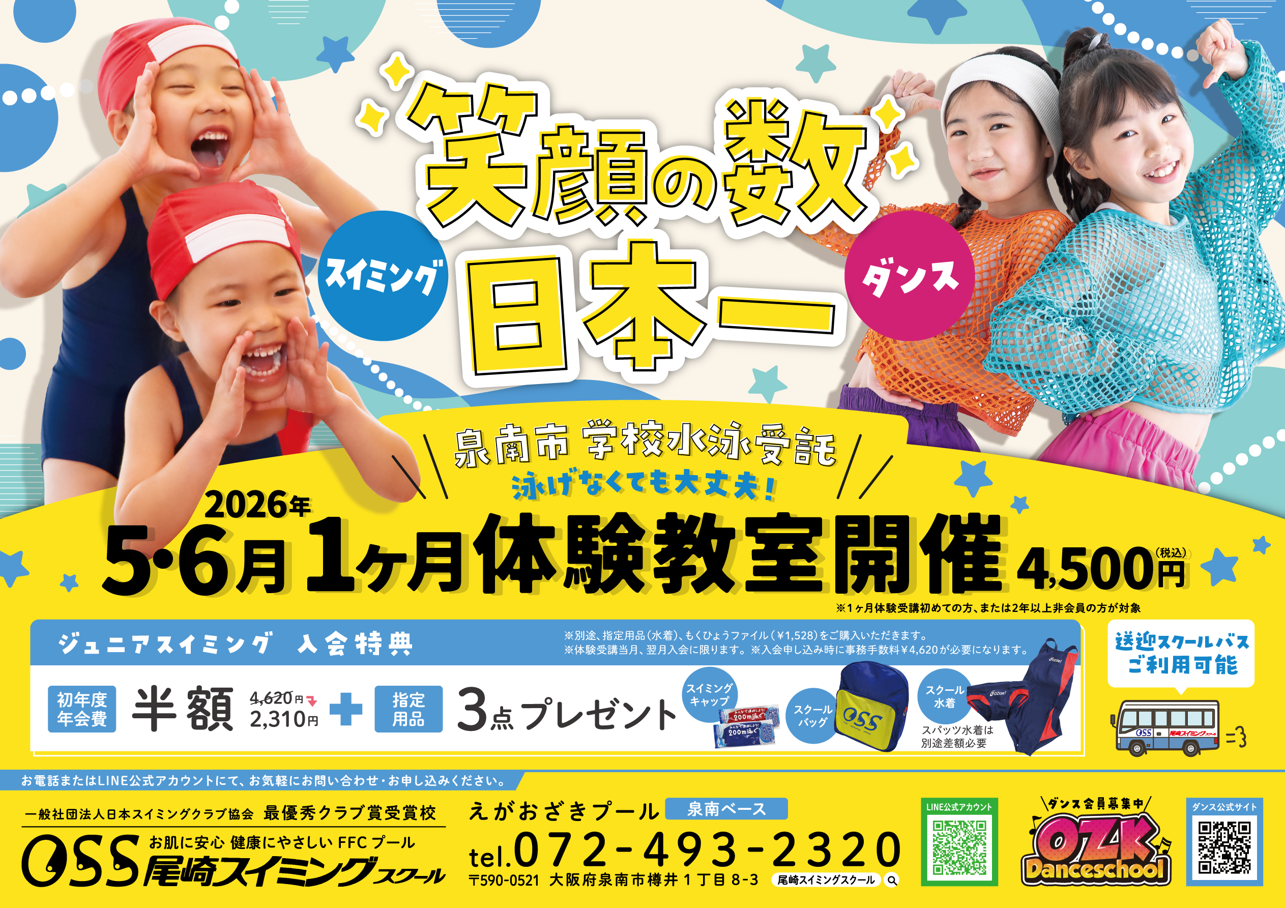 いつも尾崎スイミングスクール泉南校をご利用いただき、誠にありがとうございます。